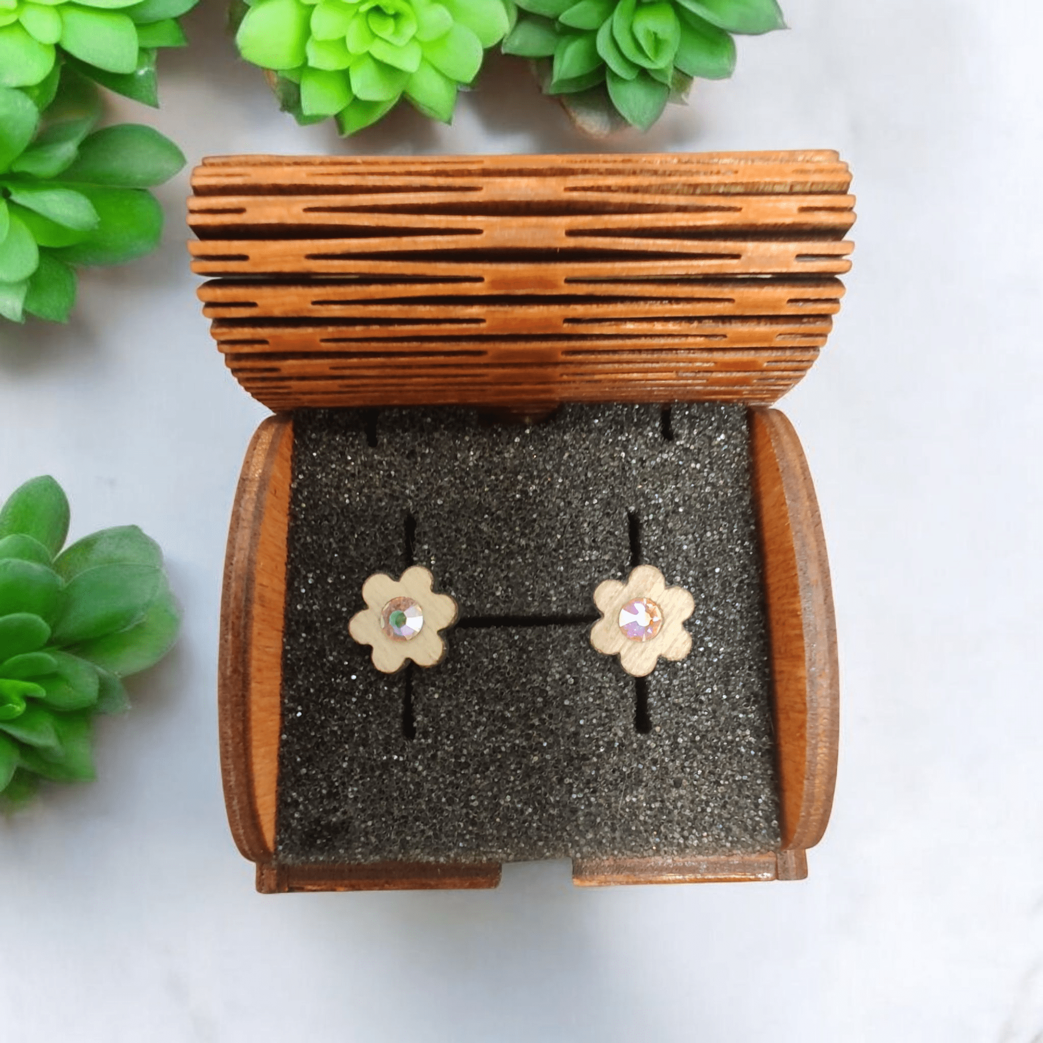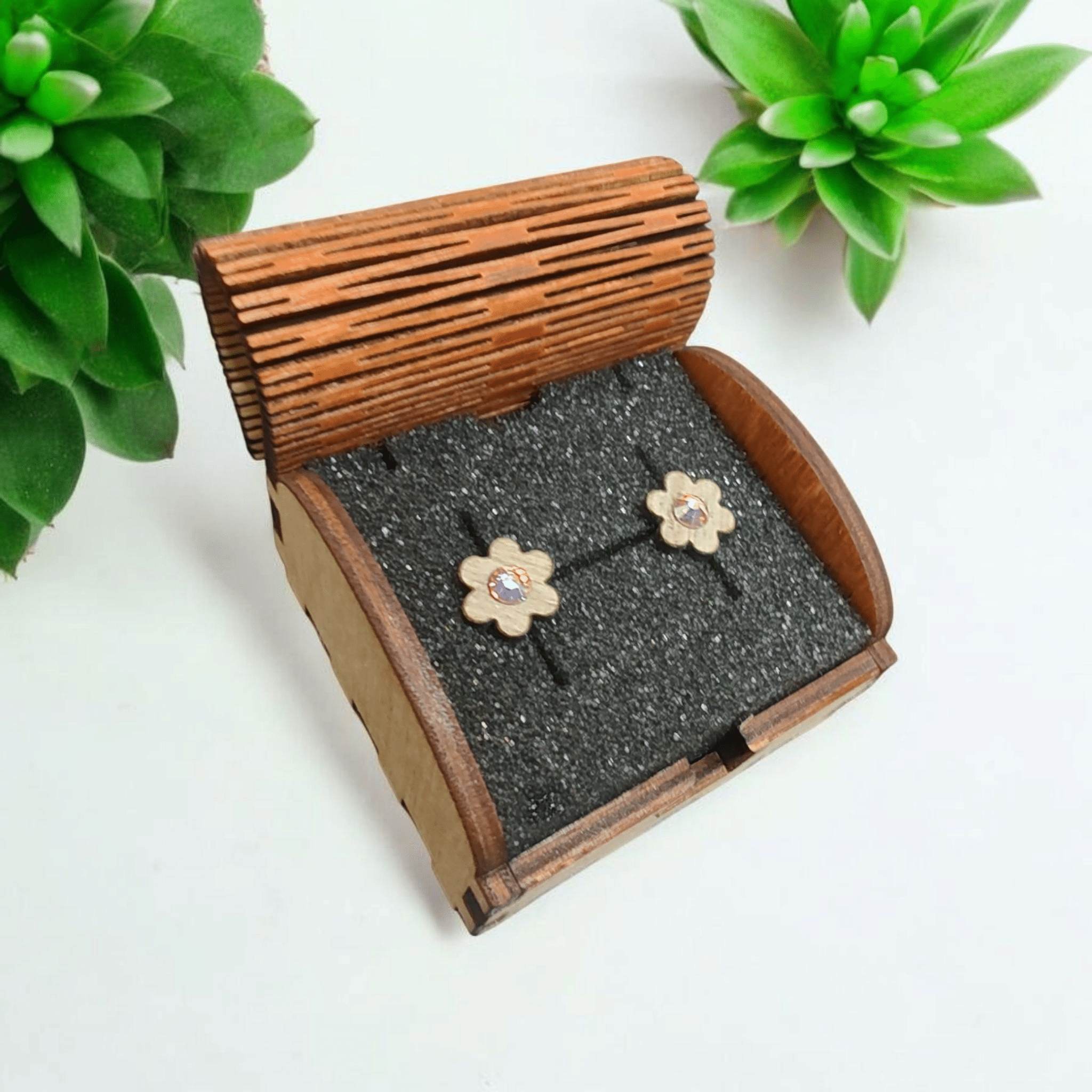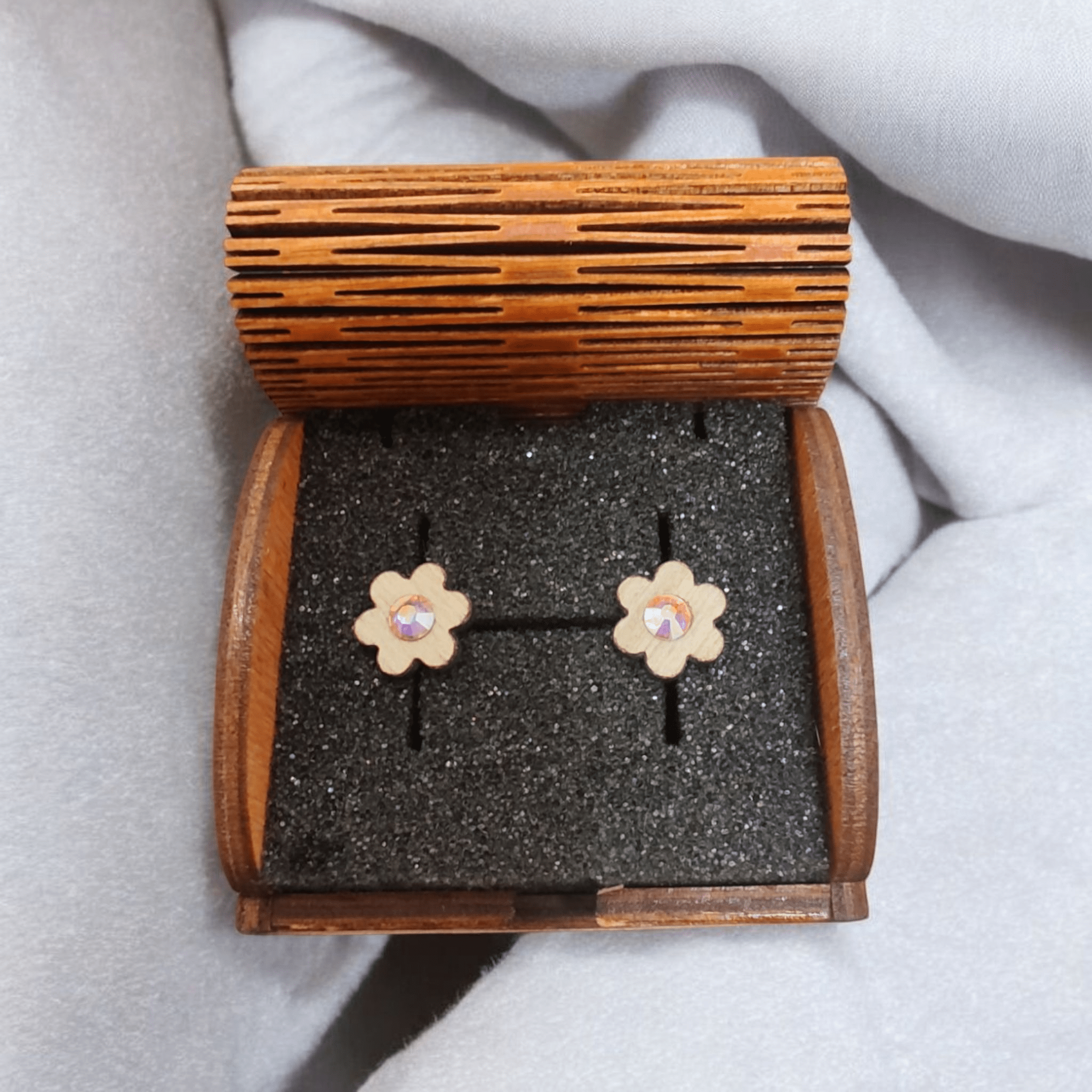 Dřevěné náušnice Oak Subtle Pink – Květina s kameny PRECIOSA
