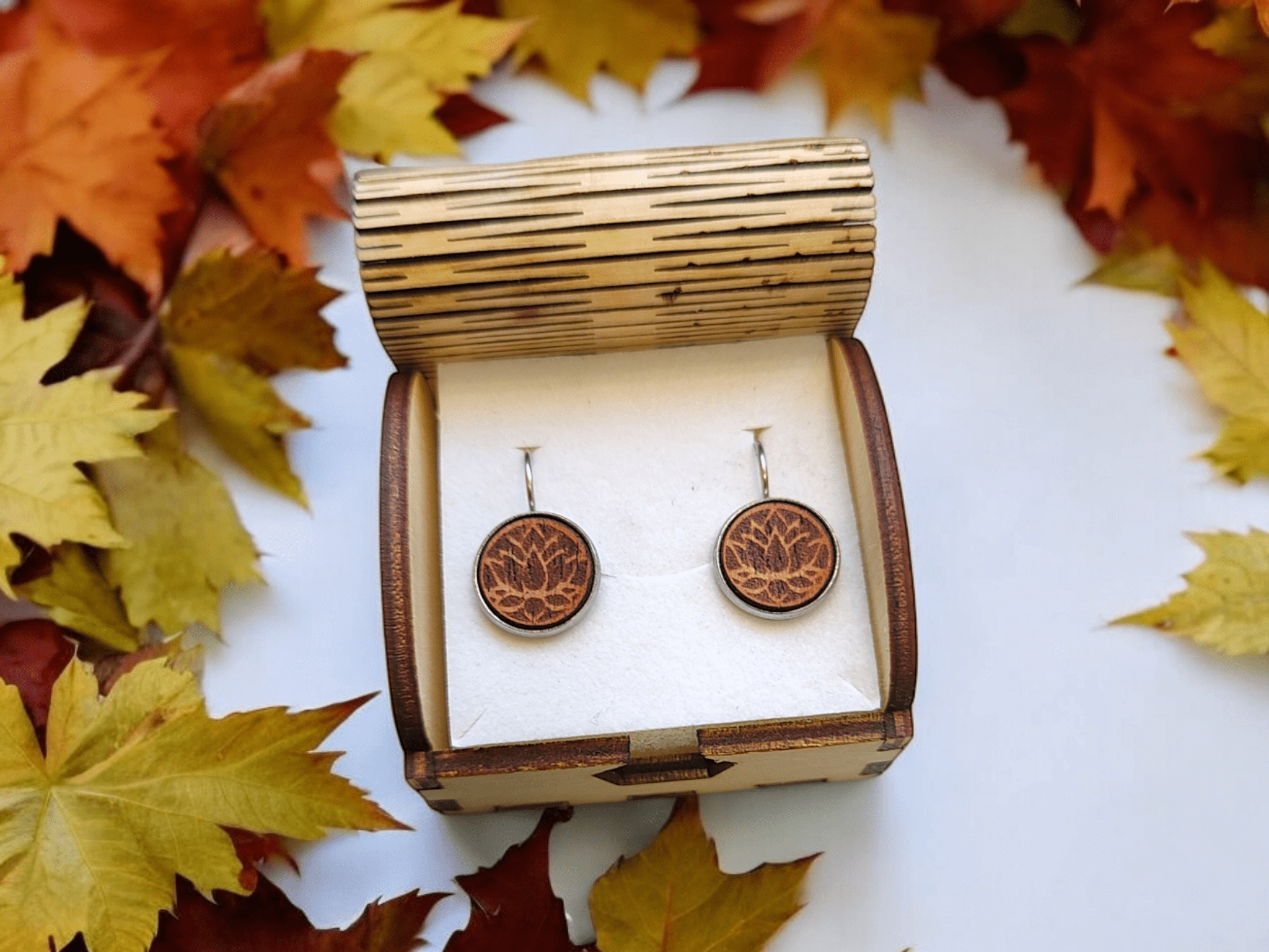 Dřevěné náušnice Vertical Mahogany Circle – Lotusový květ (Tmavé)