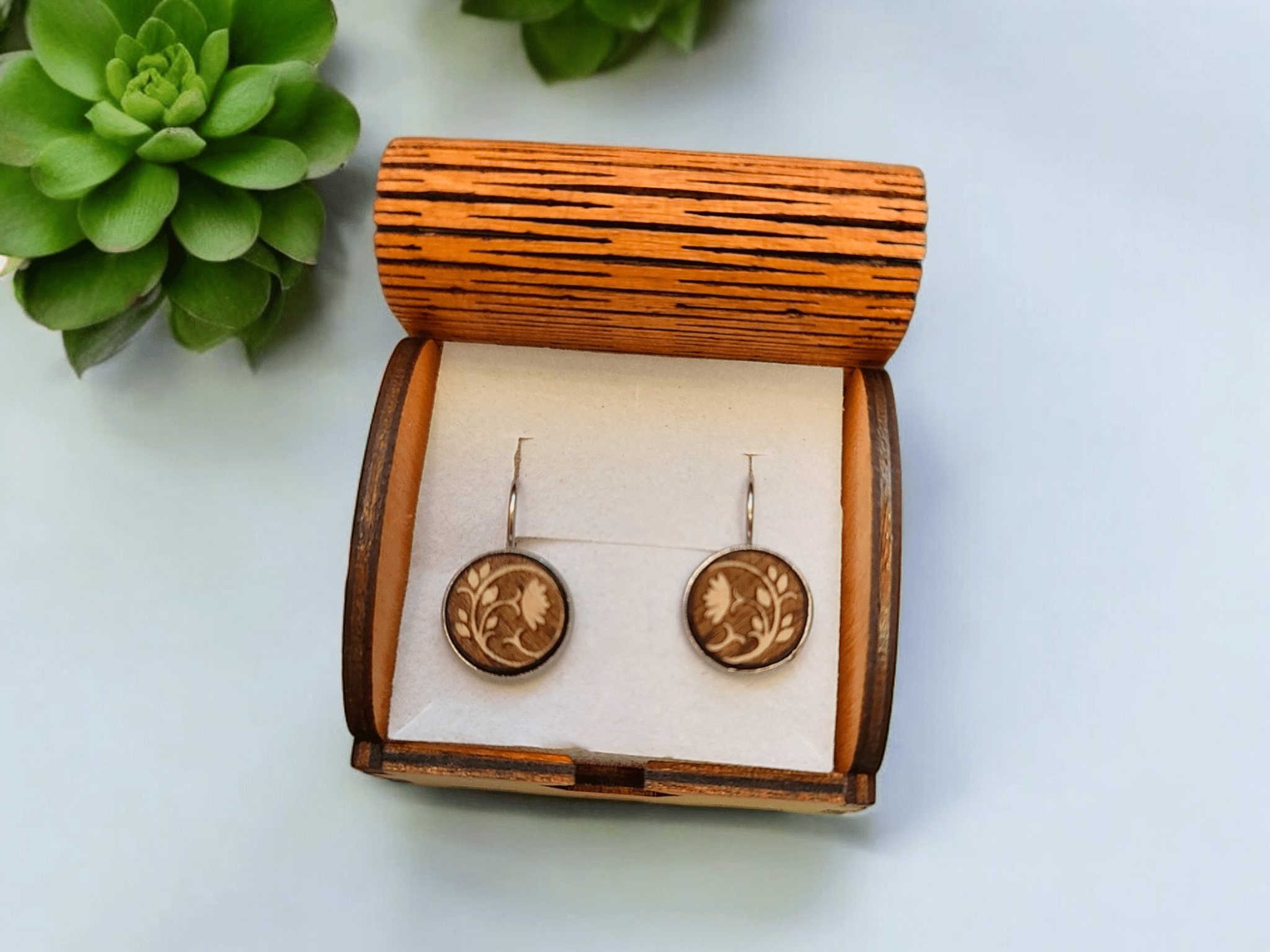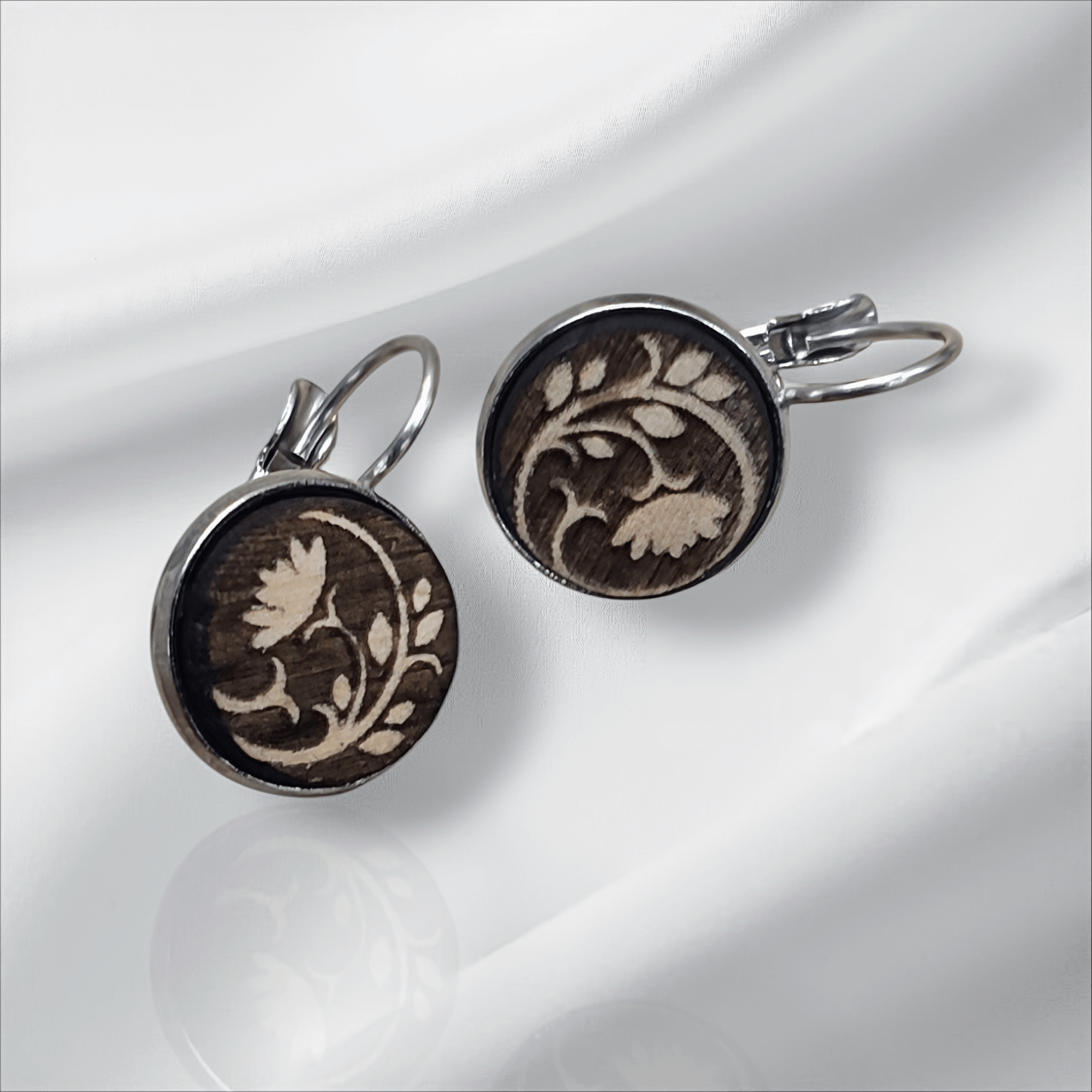 Naše náušnice jsou vyrobeny z kvalitní dřevěné dýhy. Nikoliv z překližky. Vyrábíme náušnice se záměrem na vysokou kvalitu dřeva a bižuterních komponentů. Jsme schopni vyrobit i náušnice dle vlastního návrhu. Používáme bižuterní komponenty z chirurgické oceli nebo stříbra. Nepoužíváme žádné laciné kovové náhražky. Pracujeme s prémiovým dřevem jako je Mahagon, Palisandr, Dub.