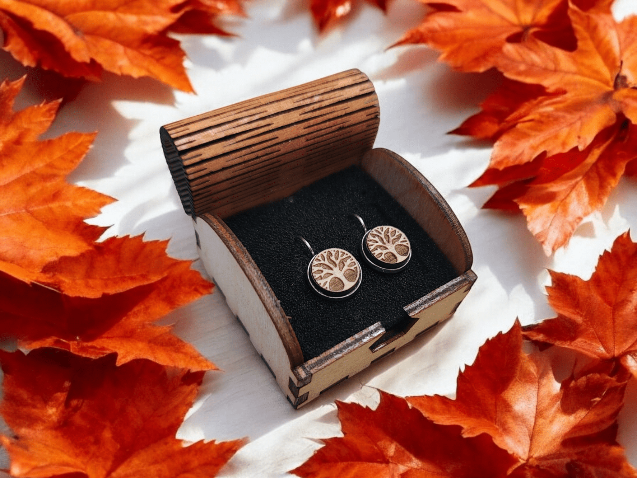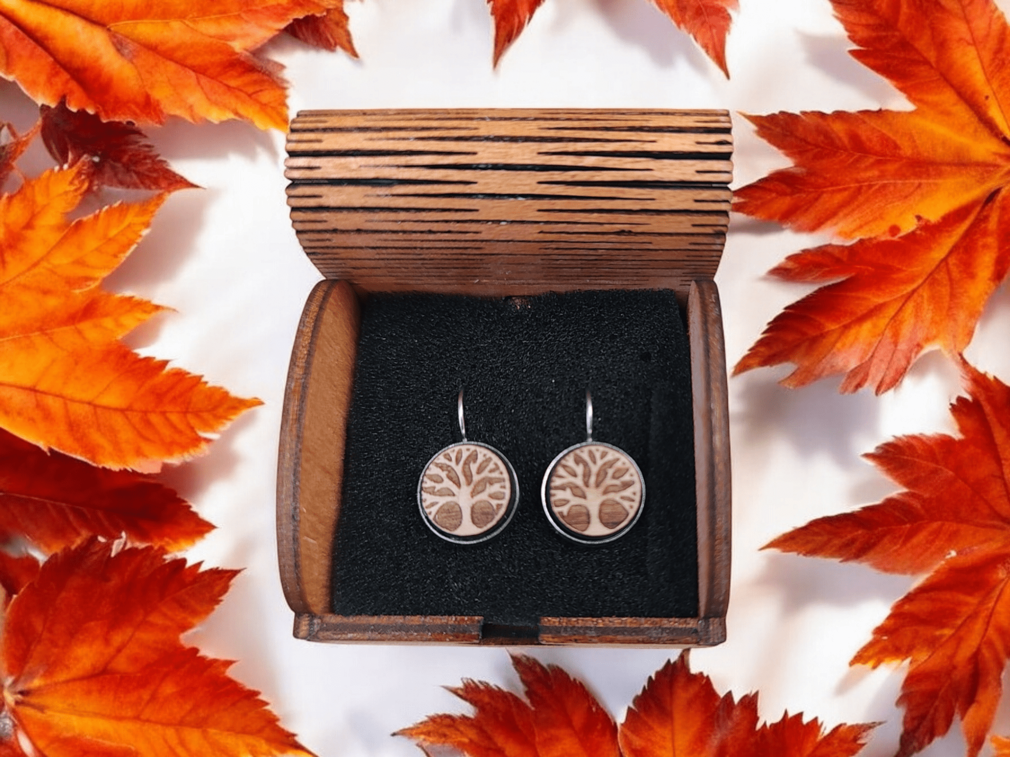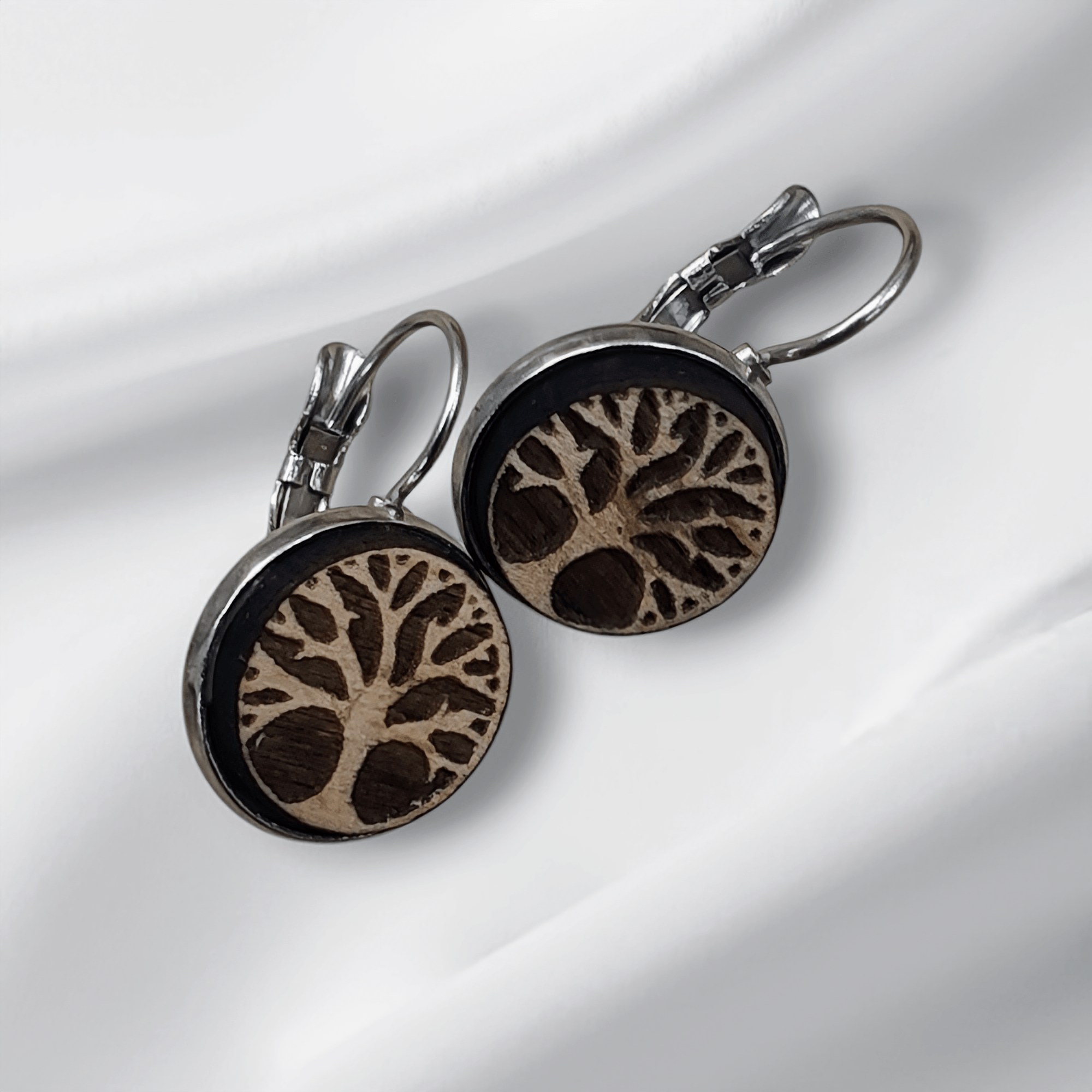 Naše náušnice jsou vyrobeny z kvalitní dřevěné dýhy. Nikoliv z překližky. Vyrábíme náušnice se záměrem na vysokou kvalitu dřeva a bižuterních komponentů. Jsme schopni vyrobit i náušnice dle vlastního návrhu. Používáme bižuterní komponenty z chirurgické oceli nebo stříbra. Nepoužíváme žádné laciné kovové náhražky. Pracujeme s prémiovým dřevem jako je Mahagon, Palisandr, Dub.