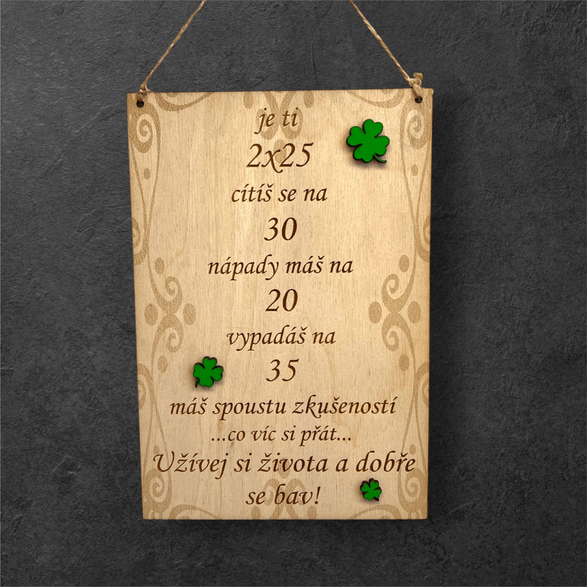 Přání k 50tým narozeninám s vtipným textem.