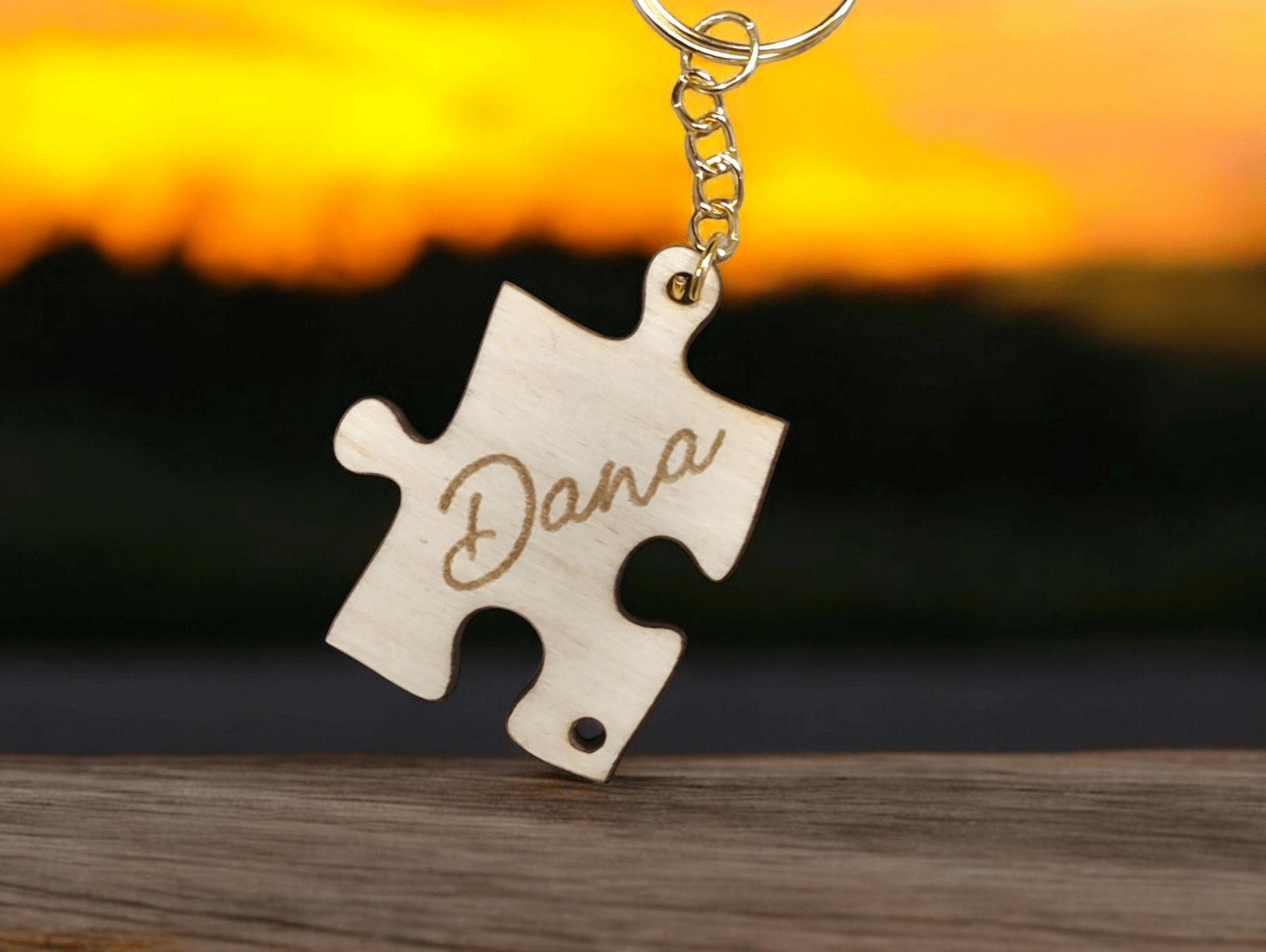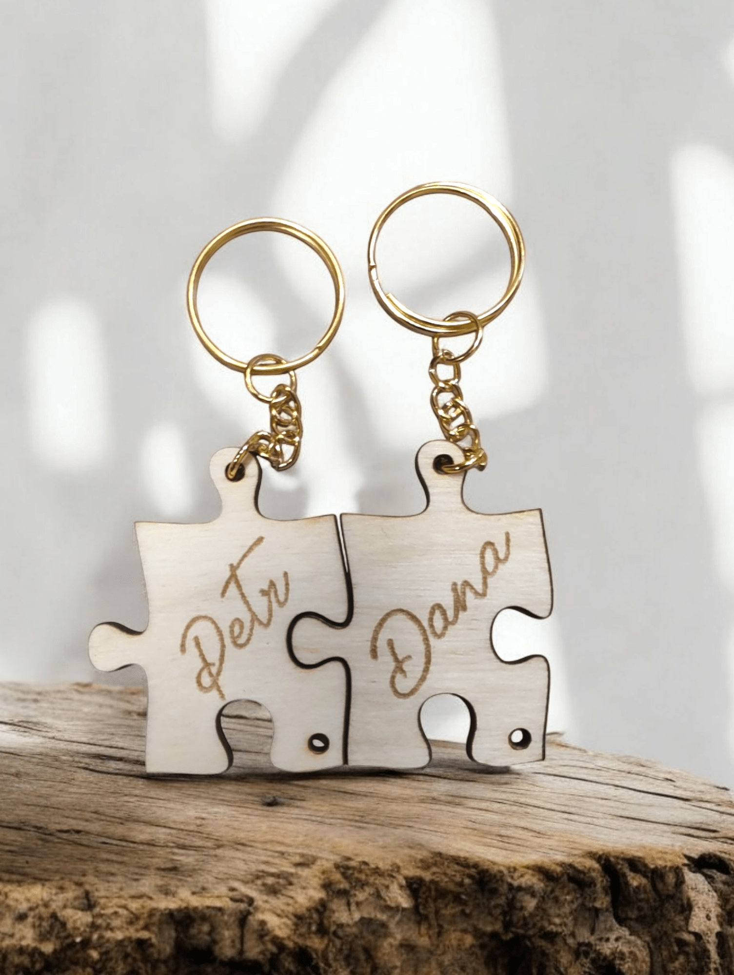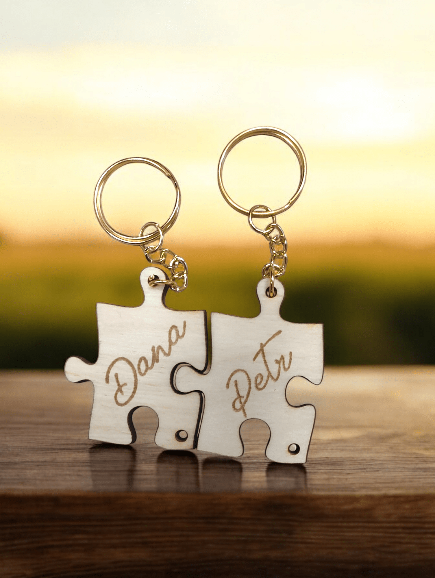 Přívěsky jsou vyrobeny jako puzzle které do sebe jdou snadno spojit. Vhodné jako dárek nebo jako rozlišení vašich klíčů. K tomuto tipu přívěsku vyrábíme i držák na zeď pro rodinu. 2, 3, 4, 5 uchycení.